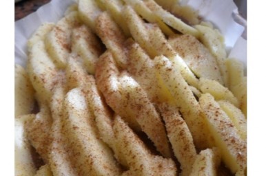 adagiatevi il composto di mele frullato (o schiacciato con una forchetta) e le mele tenute da parte tagliate a fettine.