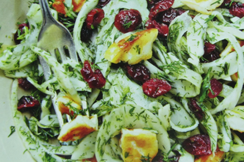 - Sgocciolare l’uvetta e lasciarla cadere sull’insalata insieme all’aneto e olio, girare con cura e servire