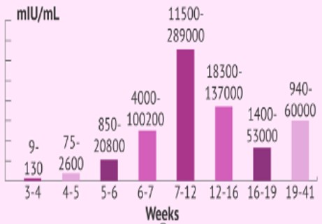 Proprio la presenza e la quantità di Beta HCG permette di essere sicuri che la gravidanza è iniziata e la sua quantità permette addirittura di sapere in quale fase della gravidanza ci si trovi. Un test di gravidanza effettuato su urine o sangue viene considerato negativo se il valore di Beta HCG risulta inferiore a 10 unità per millilitro di sangue, positivo se la quantità d’ormone dosato risulta uguale o superiore a questo valore. Con il procedere della gravidanza la quantità di questa sostanza aumenta: basti pensare che alla prima settimana di gestazione i valori sono compresi tra 12 e 77 millilitro di sangue, alla quinta sono già compresi tra 6225 e 181075, alla decima tra 21500 e 188925, per poi ridiscendere e mantenersi stabile fino al parto.